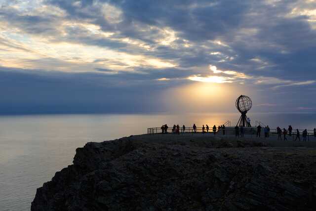 Sunset at North Cape Globe Monument Norway